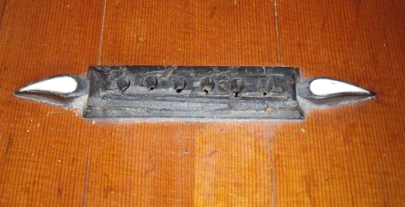 The guitar when it came in was generally in quite good condition, considering its age, but was rendered unplayable by a damaged bridge.