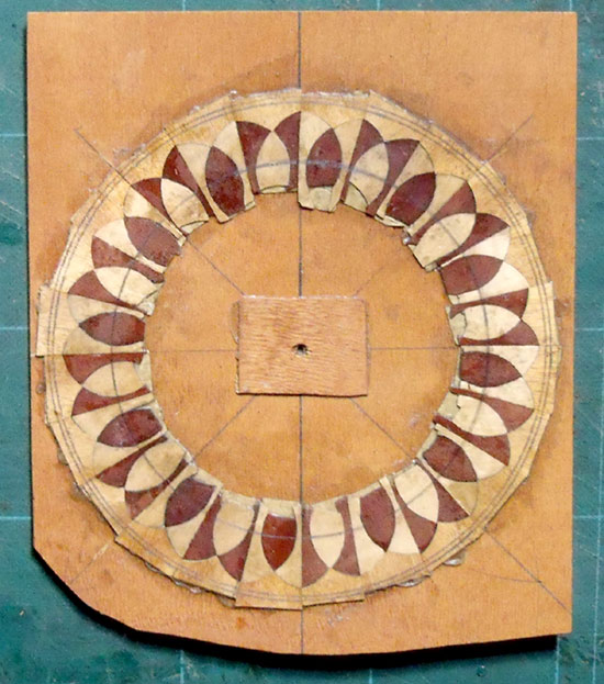 Three circles drawn using centre hole and compasses - The outer is the one I will saw to.